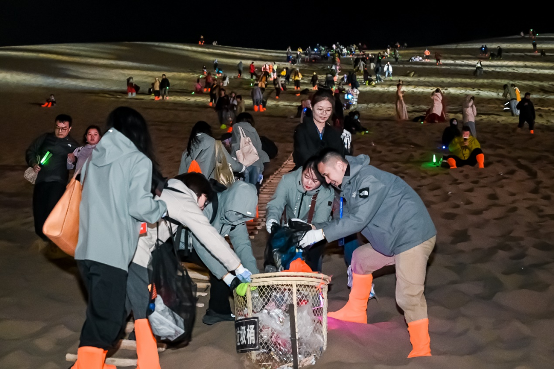 此外,在音乐季散场结束后,九牧还发起“带走垃圾 留下爱心”的公益活动,组织志愿者沿途捡拾垃圾、清扫现场,并通过公益标语和直播的形式,呼吁大家积极参与活动,让每个人化身沙漠绿洲守护者。
