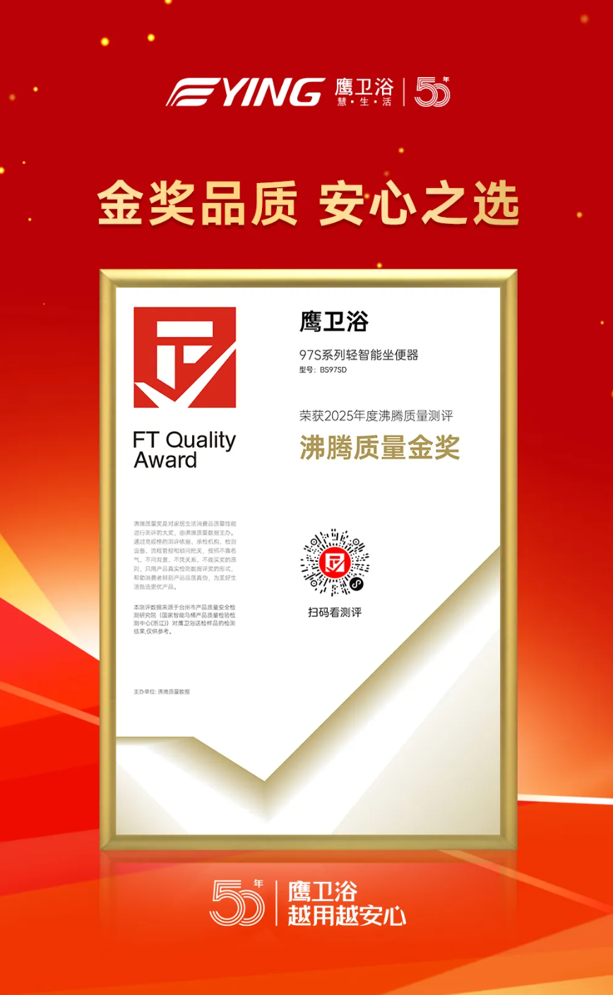近日,鹰卫浴BS97S轻智能坐便器与INNO新智系列智能挂厕,在“沸腾质量奖”评选中双双折桂。这份荣誉不仅印证了产品在多维度上的硬核性能,更源于品牌50+年对“品质长期主义”的坚守。鹰卫浴这次获奖的产品均成功通过了国家级专业检测机构的严苛评测,多项核心指标均以超越标准的实测数据予以验证。每一项超越标准的数字,都是产品安全、可靠、耐用的基石,为用户铺就了“安心”旅程的第一块坚固砖石。