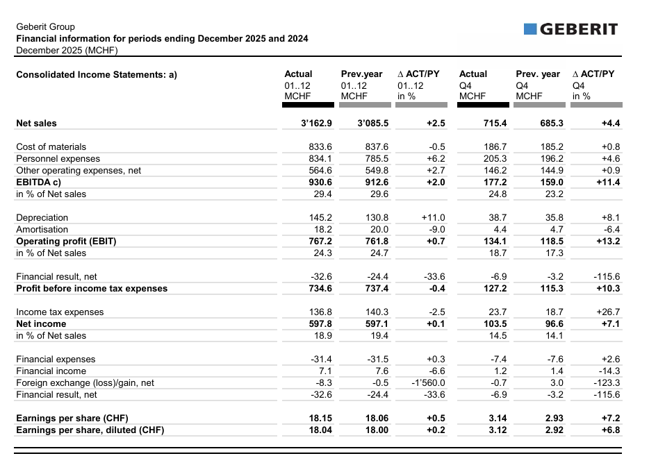 受益于股票回购计划的积极影响,每股收益表现优于净利润,同比增长 0.5% 至 18.15 瑞士法郎;自由现金流实现正向增长,同比增长 7.4% 至 6.59 亿瑞士法郎。