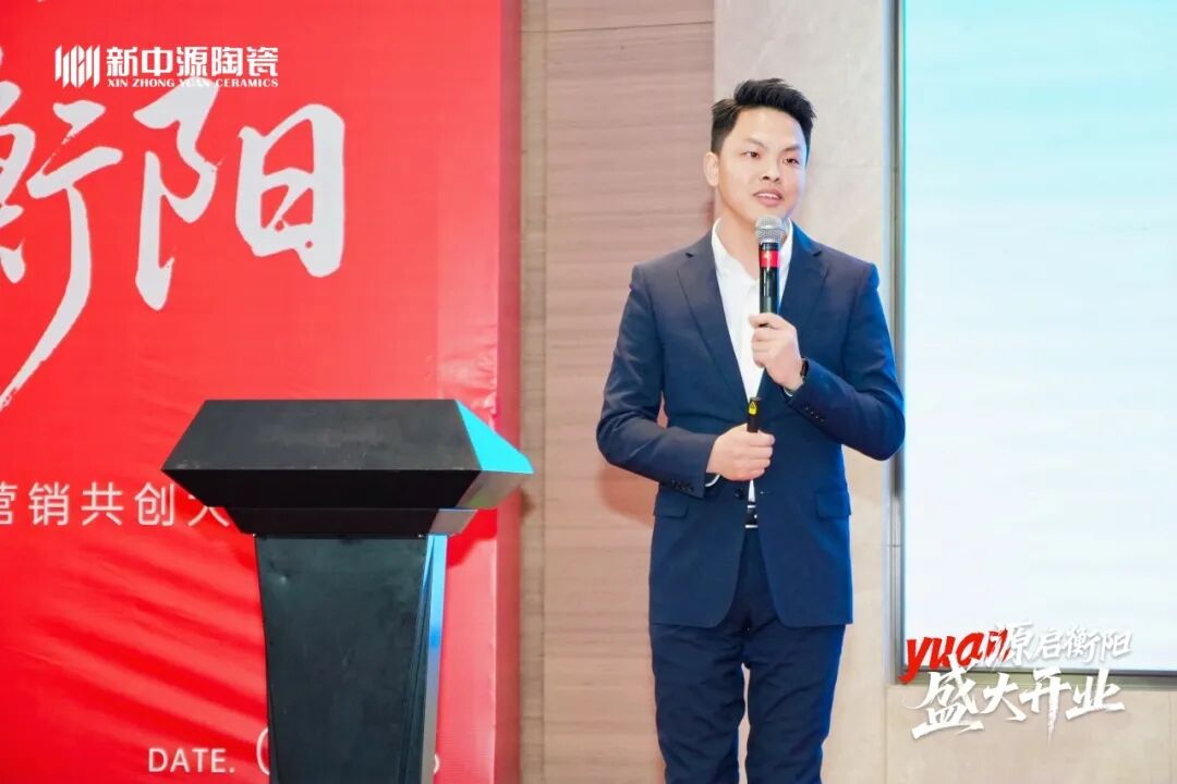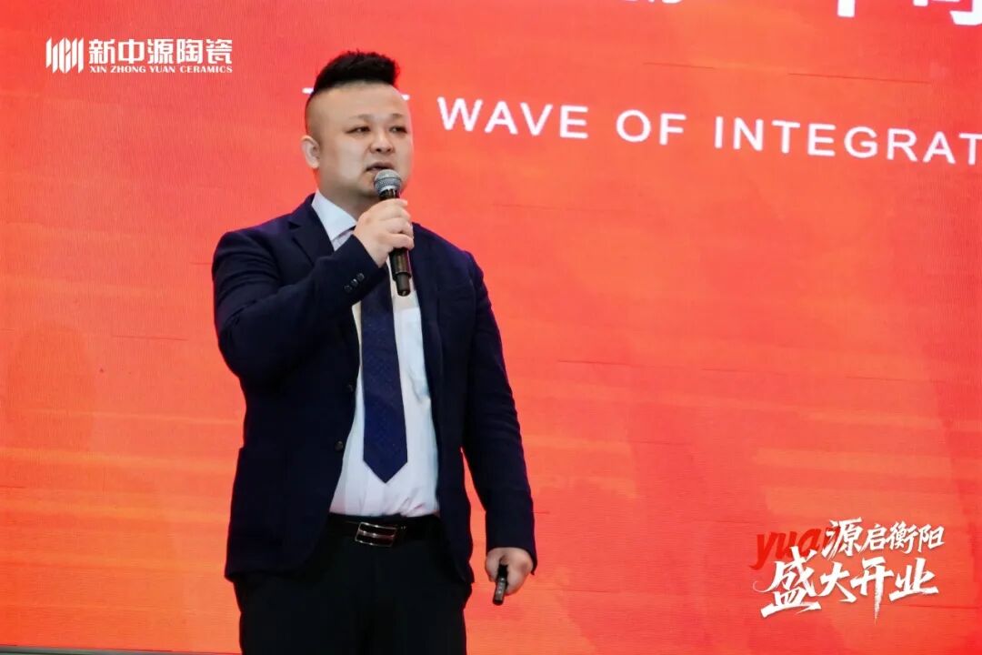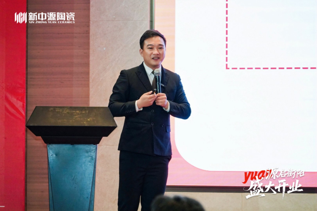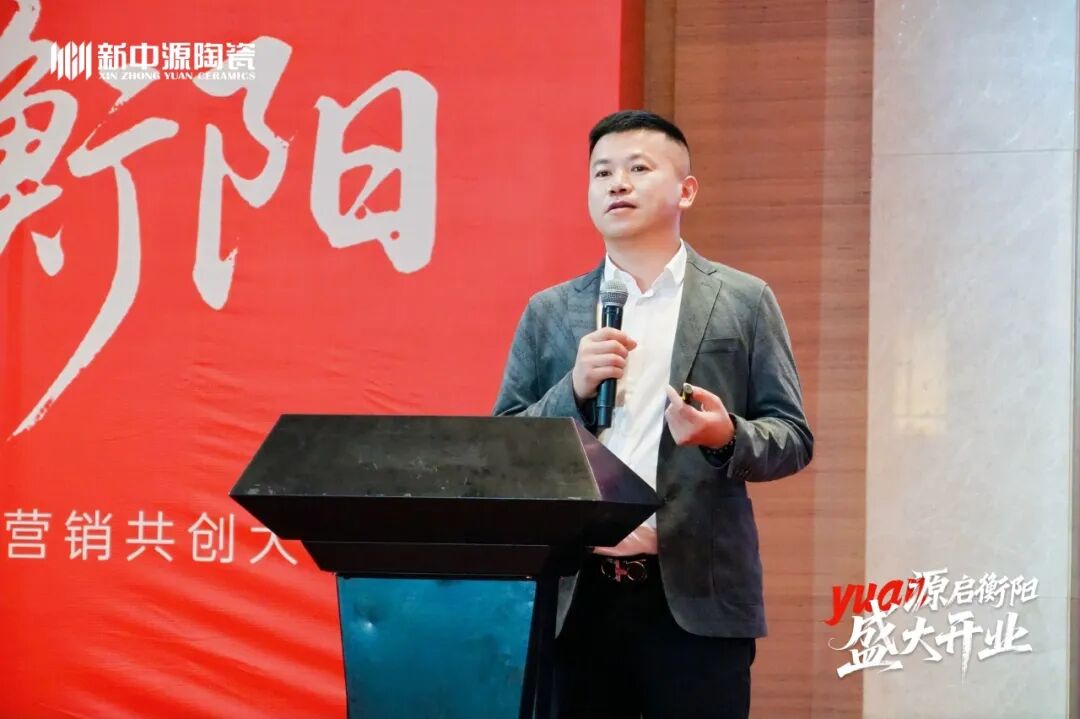 他紧扣国家十五五规划与行业发展大势,深度剖析市场新周期下的机遇与挑战,清晰阐释新中源陶瓷 “一三四” 核心战略:即以品牌为核心,通过三大基本点协同发展、四大制高点驱动增长,为品牌发展锚定核心方向。