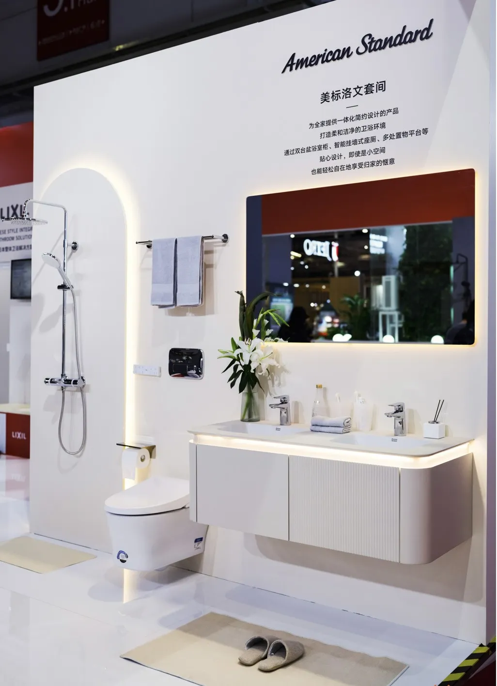 在本届进博会上,骊住展区设计紧扣“新质发展”主题,聚焦个性定制、多元色彩、健康洁净与绿色可持续领域。美标在各个展示区域展出了其明星产品,以强大的产品阵容和创新科技,彰显品牌精髓——可靠、暖心、敢于创新,致力于为消费者打造理想的卫浴空间。