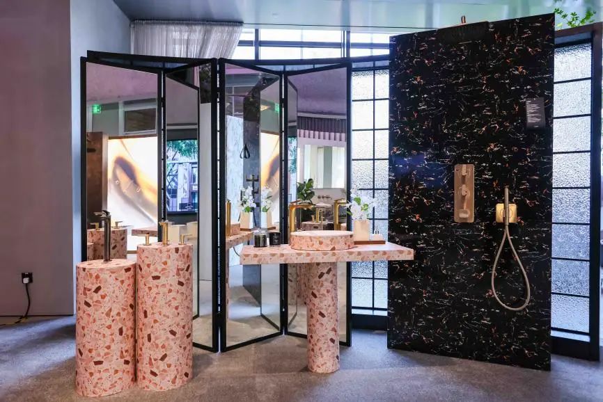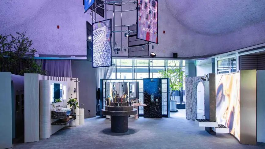 进入第三层空间,与以往大不相同,这里围绕AXOR雅生全新品牌战役宣言“Escape the Ordinary 心向无界”,打造了全新对个性奢华卫浴的探索之旅。空间中心区域陈列着不同个性定制款式的产品,外侧以还原大师设计的浴室场景,呈现了AXOR One新系列、AXOR 奇特里奥C以及AXOR ShowerSphere淋浴天幕等新品,带来更多个性奢华设计的灵感和可能性。此外,第三层空间展板可移动变化,未来也将成为创新沙龙和行业峰会等共创之地。