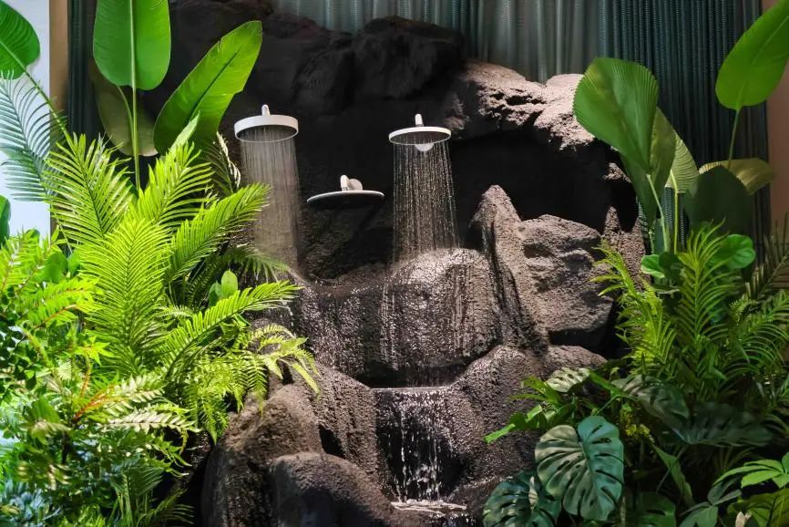 InnovationParc的三层建筑为老船厂的旧址改造,不仅承载着城市的历史记忆,同时又激荡对未来的探索。在这里,“灵感永续,精彩流动”的概念贯穿:一层,首先映入眼帘的是“Water Feature”——绿植与山石组合溯源品牌发源地德国黑森林。三款明星花洒产品——Raindance Alive「双星雨」、境雨和驰悦错落陈列,潺潺水声仿佛重现了希尔塔赫的清泉流淌。