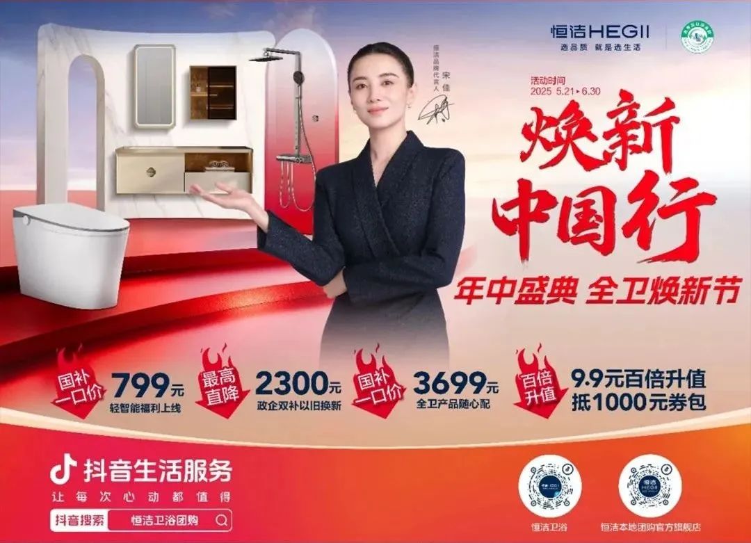 为了更快将政策红利落地市场,恒洁还在全国快速布局抖音本地化,打通线上引流与线下转化的全链路,为终端营销注入了新动力,进一步强化品牌影响力和市场覆盖率。