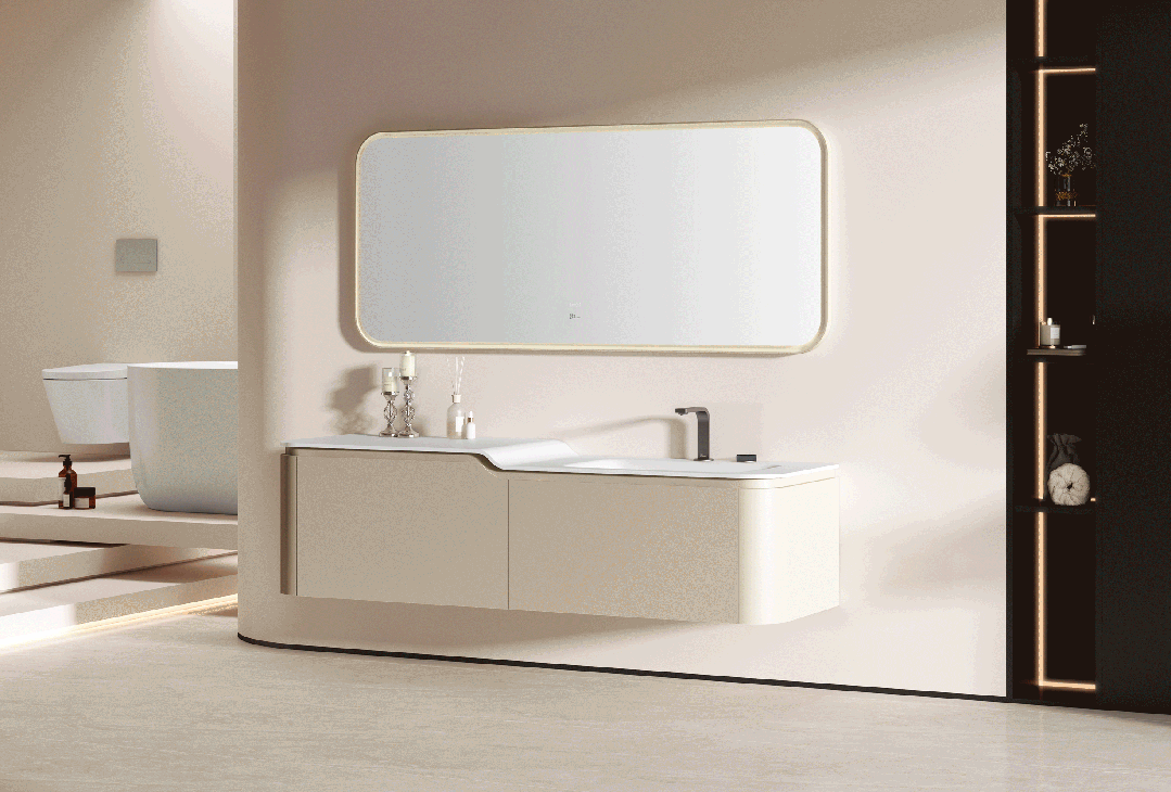 在健康与耐用性维度,帝王洁具正加速推进ENF级顶级环保标准在浴室柜产品的普及,并深度融合抗菌、防霉、抗冲击等核心性能。通过精选环保基材与革新工艺,在实现甲醛释放量趋近于零、杜绝重金属析出的同时,显著提升柜体在潮湿环境下的抗菌防霉能力及日常使用中的抗物理冲击强度,为家庭筑起“健康屏障+耐用保障”双重防护体系。