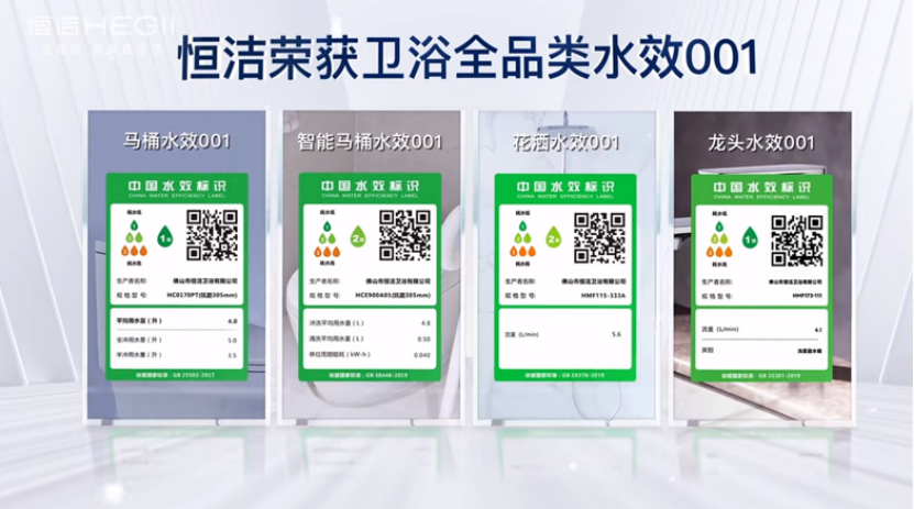 国家政策要求“以旧换新”产品必须达到一二级水效。恒洁核心品类均获“水效标识备案 001 号” 认证,全面达成国家一级水效标准,以全线产品均符合国家“以旧换新”补贴标准的姿态,推动“以旧换新” 政策惠及多样化换新需求。