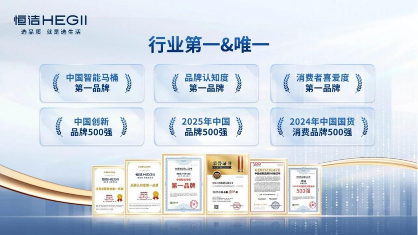 作为“中国消费者首选卫浴品牌”,恒洁屡次登顶中国品牌500强卫浴类榜首,多次获评品牌认知度与喜爱度双第一,并连续得到权威机构“智能马桶第一品牌”的身份确认。这些品牌认知在“以旧换新”政策背景下,加速转化为消费行动。